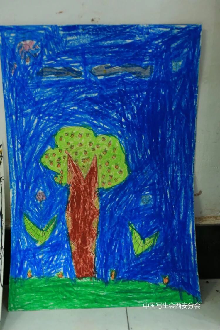 孩子们也用稚嫩的画笔记录秋的美景,专注!快乐!
